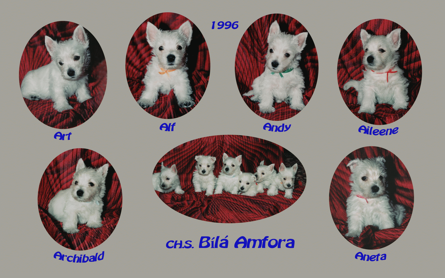 - (Art, Aneta, Aileene, Archibald, Andy, Alf) - matka: Lady Třešňový květ, otec : Daylight Zo Starého Škótska |