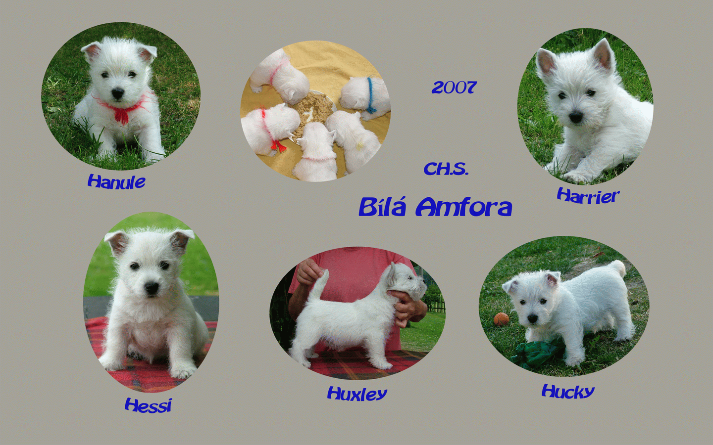 - (Hanule, Hessi, Harrier, Hucky, Huxley) - matka: Daisy Bílá Amfora, otec : Un Pour Moi du Moulin de Mac Gregor |
