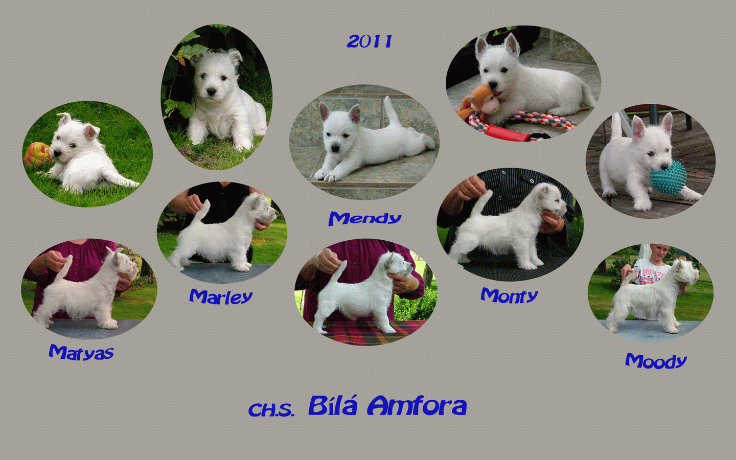 - (Mendy, Matyas, Moody, Marley a Monty) - matka: Hanule Bílá Amfora, otec : Al'Fred Playing for White Gallardo |