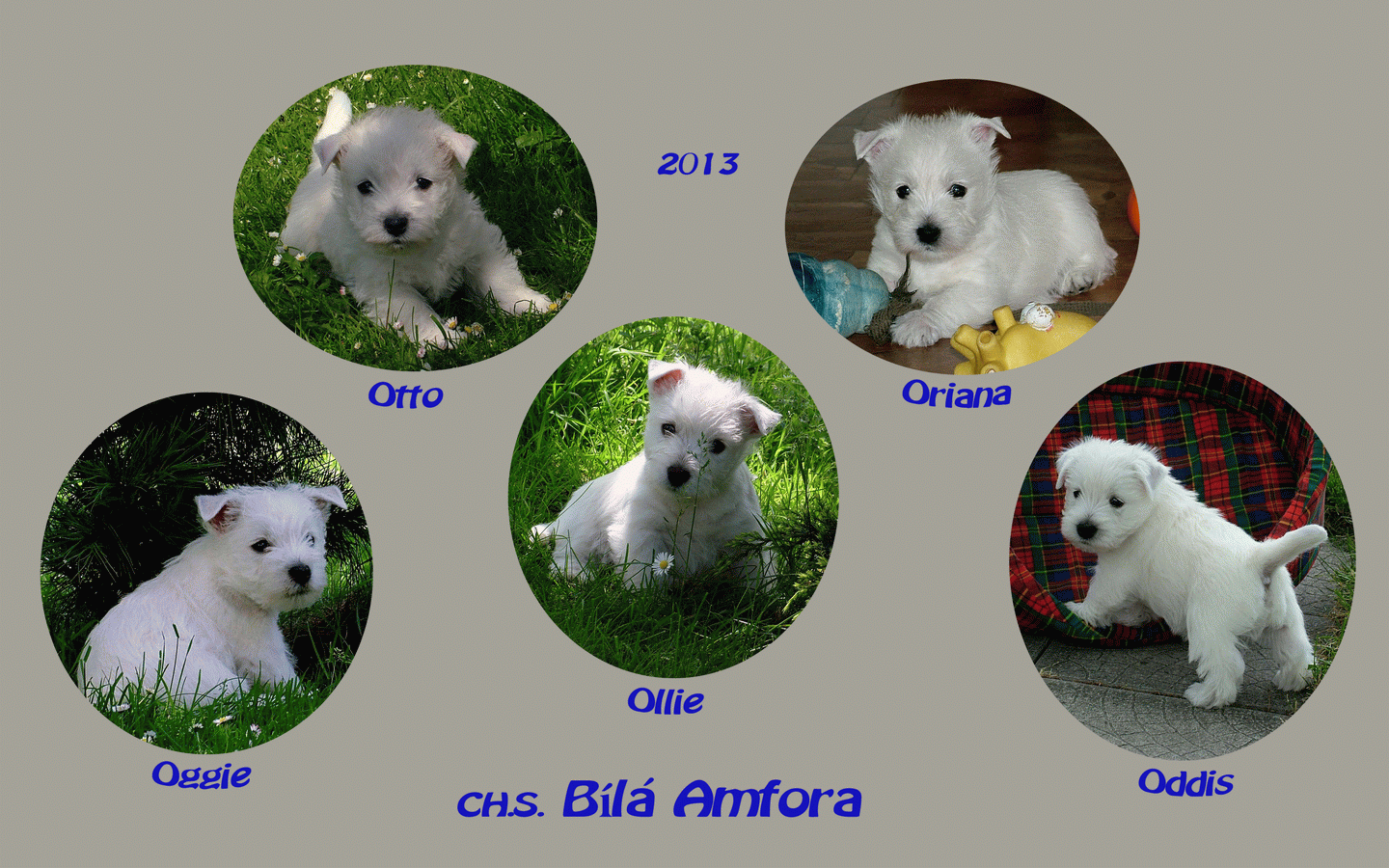 - (Oddis, Oggie, Otto, Ollie, Oriana) - matka: Kayla Bílá Amfora, otec : Dashing Dancer of White Gallardo |
