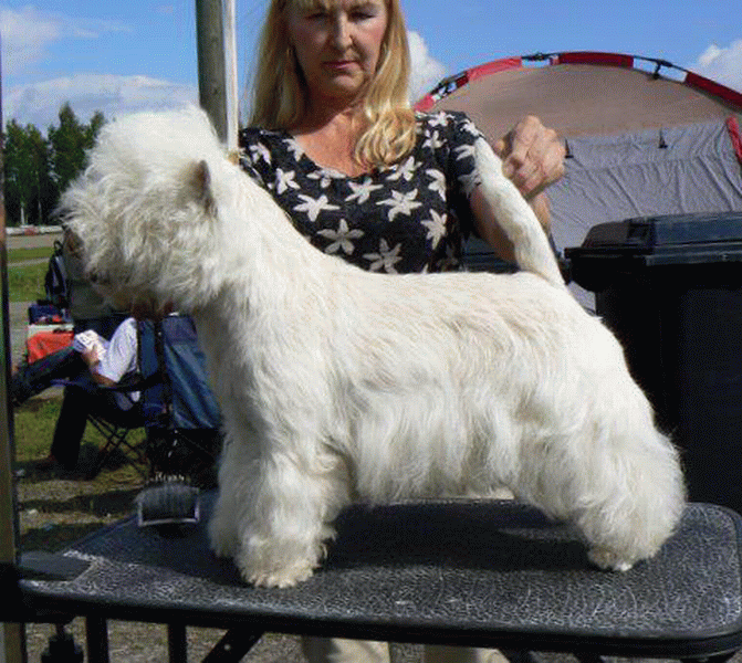 * 10.7.2011 Národní výstava psů Mäntsälä (Finsko) Ionash Bílá Amfora - BOB, CAC a stává se novým šampionem Finska a jeho syn White Villan Terminator(Kevin) Bob štěně - velké gratulace Minna, Birgit a Piia!
