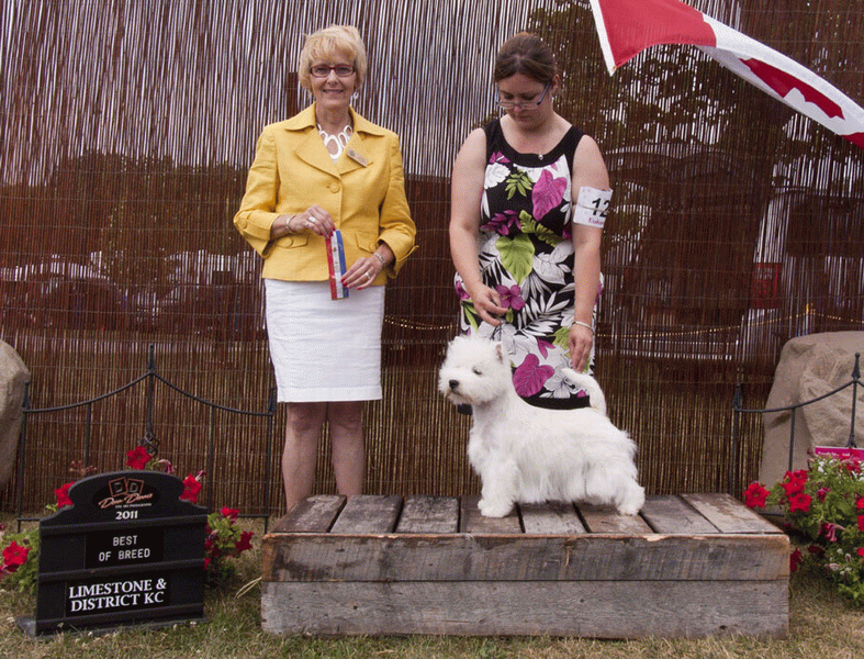 * 7.8.2011 Kees Bílá Amfora - nový šampion Kanady - velká gratulace a dík majitelce Andreea Catargiu a také Chrystal Murray za perfektní přípravu a předvedení!