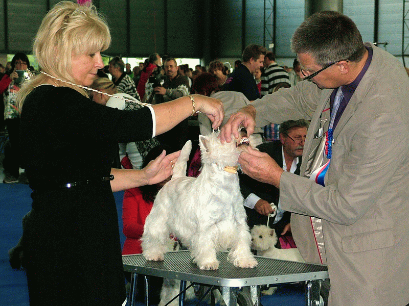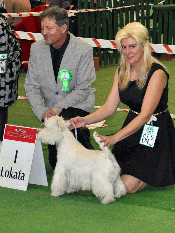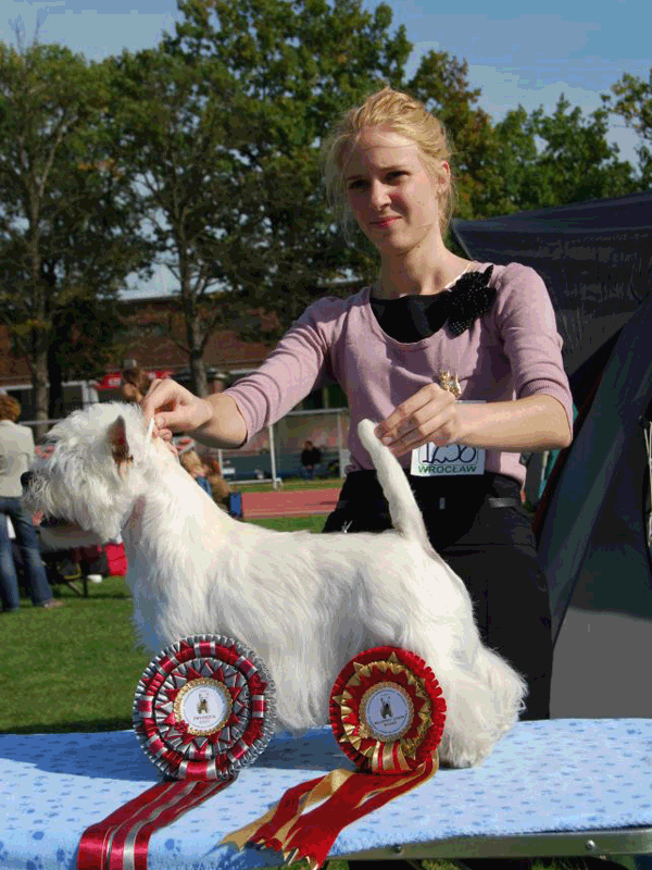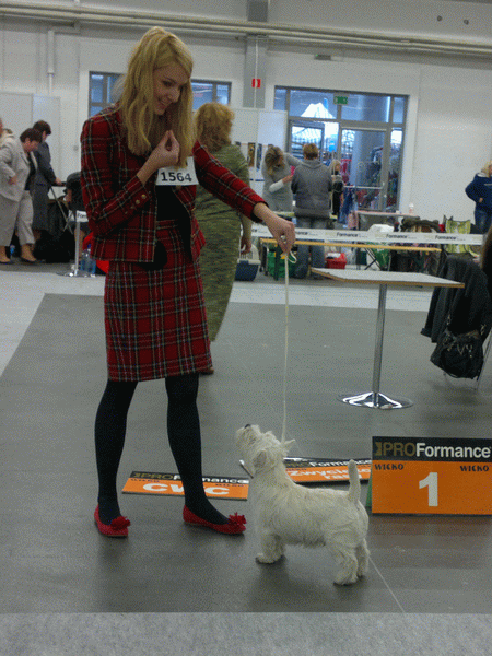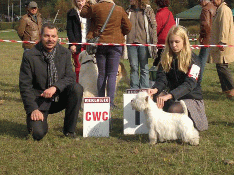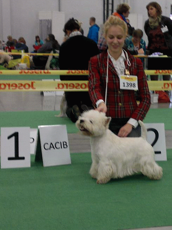* 8.11.2014 - Terrier Club Show Kielce (PL),rozh.V.M.Soleckyj-Szpunar(PL), Oddis Bílá Amfora - mezitřída - výborný 1, CAC - gratulujeme majitelce!