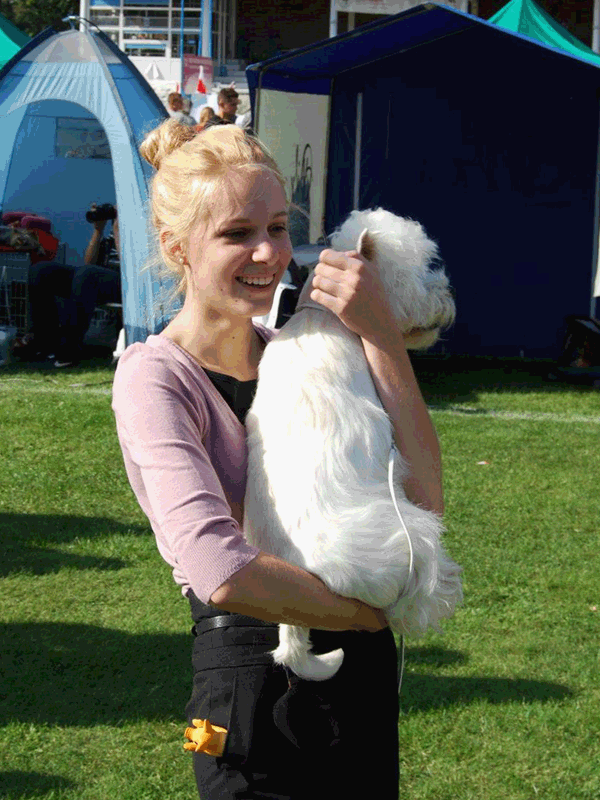 * 20.-21.8.2011 Ivet Bílá Amfora - BOS, CACIB, CAC a stává se novým šampionem Estonska, Ionash Bílá Amfora - nový šampion Estonska - gratulace majitelce Minna Jaakkola!