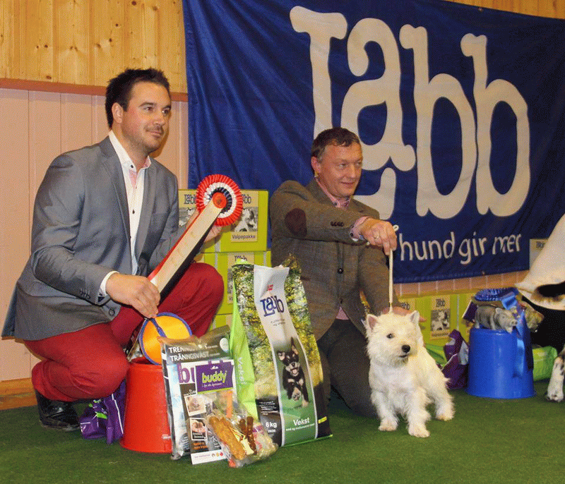 * 30.8.2014 a 31.8.2014 - 2x Dog Show Trondheim (N), Polly Bílá Amfora - třída mladých - výborná 1, CAJC, nejlepší fena